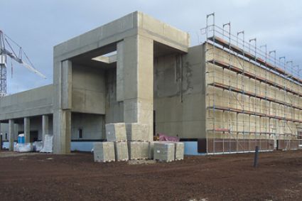 The shell construction of the Commissary Supermarket in the area of the Airbase Spangdahlem is completed.