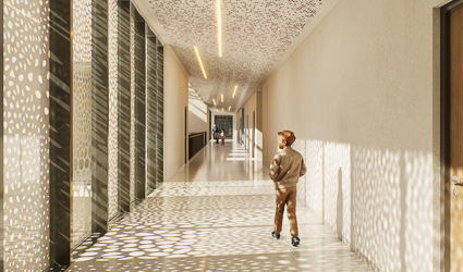 In addition to the flexibly designed learning areas, the project includes an administration area, a canteen kitchen, cafeteria, library and a gymnasium. In the outdoor facilities, large play and recreation areas will be integrated into the spacious green space.
