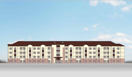 The building contains 70 two-room apartments. The new construction is four-storey with a partial basement in the middle of the building.