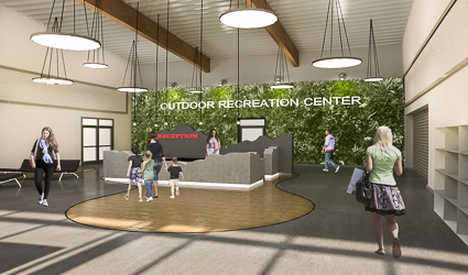 In Wiesbaden ICS Design Team designs a new construction of a building for supporting leisure activities. Equipment for activities (bikes, skis, canoes etc.) can be loaned and travel can be booked.