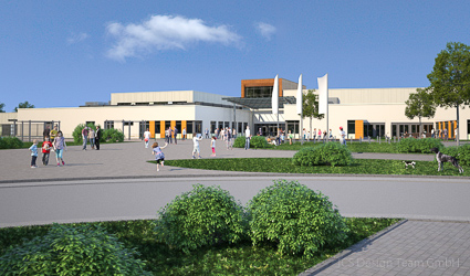 A new elementary school for 610 pupils will be constructed on a slope directly adjacent to the existing school in Landstuhl. The key feature of the design is that the individual classrooms will be arranged according to a new pedagogical concept. The classrooms of the individual grades will be arranged around a commonly used central learning area, which will make it possible to hold lessons that vary from the usual frontal teaching approach. Apart from the classrooms, the room schedule comprises a library, a canteen with adjacent kitchen, administrative and consultation rooms as well as a gymnasium including secondary rooms.