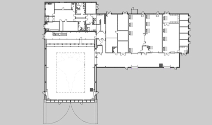 The dining area is also intended to serve as a meeting room for group activities. Two training rooms are separated by folding walls.