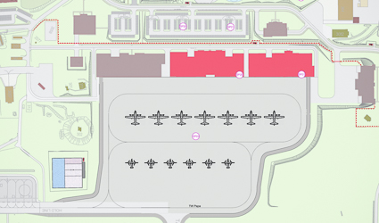 A combined aircraft maintenance and paint shop is being built as a central supply facility for the US armed forces in Germany. This includes an administration area, a workshop area with adjacent warehouse, as well as the large integrated paint booth.Between the administration area and the adjoining rooms, a complex decontamination sluice is designed. A supply air system with plenum swing doors and filter systems, which is unique in Europe, will be installed for the paint booth, which will ensure an optimal air flow within the booth and thus the best possible painting results.