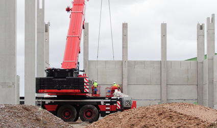 After intensive work on outdoor facilities and the foundations, the new Logistics Center in Germersheim is now also growing taller! The building shell is progressing rapidly thanks to prefabricated construction. Next, the trusses and the roof structure will be assembled.