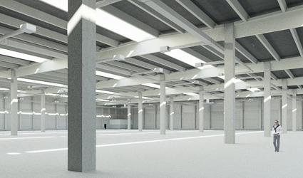 In 2010 and 2011 the existing large logistics center had been planned by ICS. Currently we design an extension to this building. The new annex will adopt the proven construction of the existing logistics center, with precast concrete elements, sandwich panel facades and a heated floor slab. Special demands are made on this floor slab in terms of load-bearing capacity, evenness and, partially, protection against leaking chemicals. The new building is essentially divided into three areas: A shipping hall with eight dock levellers, a warehouse with high-bay storage and an automatic conveyor belt system, as well as an administration area.