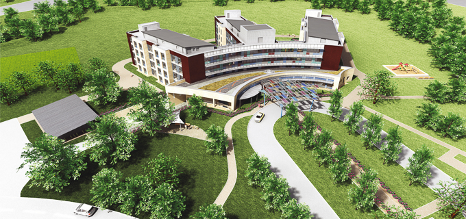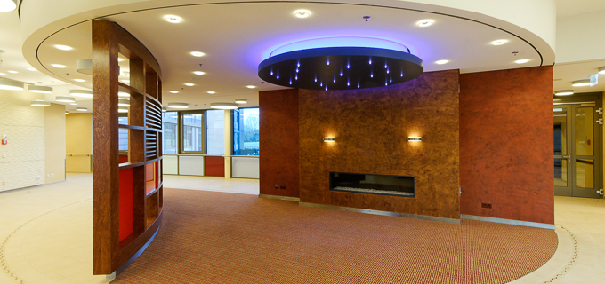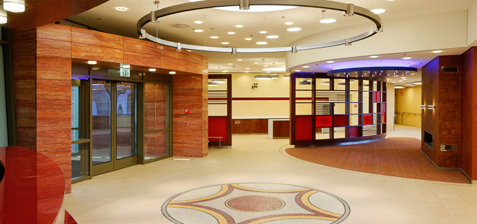 The total of 164 suites spread over three radially arranged, 4-storey wings, which are connected to the central entrance area and interconnected by a representative corridor area.