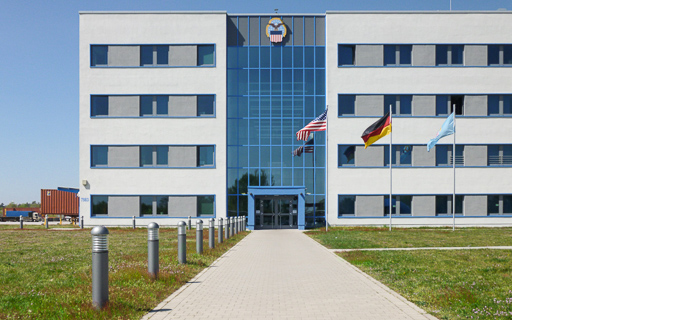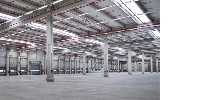 Forwarding halls and warehouses with an integrated 4-storey administration building.